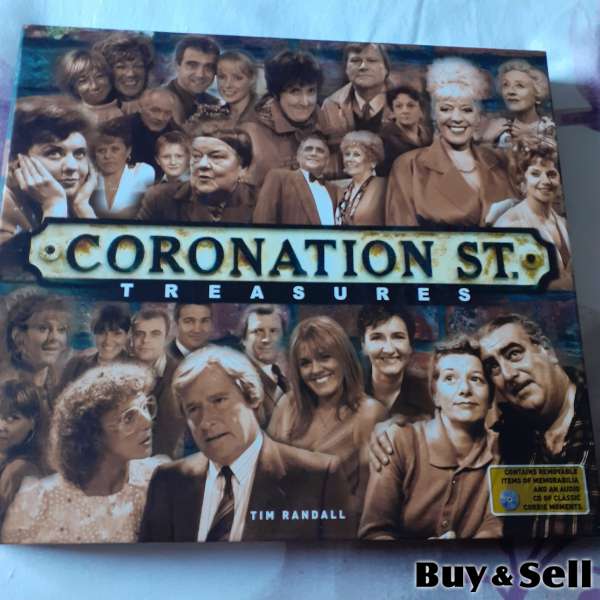 CORONATION St Treasures. Collectors Item, Hardcover book, contains removable items of memorabilia & audio CD of classic Corrie moments. Great Christmas gift idea.