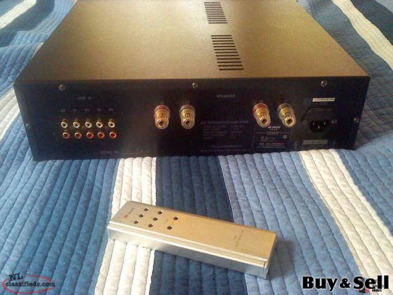 AMPLIFIER, Esound S8 150 watt integrated amplifier with remote control. 5 inputs , volume , power , mute , and display dim/off! Retailed for $1400. In very good condition. Has a large toroidal power transformer. Esound got excellent reviews for their matching CD-E5 cd player. Dimensions are 17 inches wide by 15 deep, 5 inches high. Check this link for a review: https://www.canuckaudiomart.com/forum/viewtopic.php?t=290