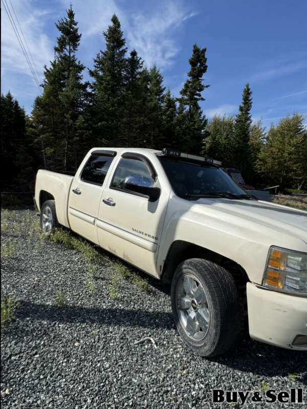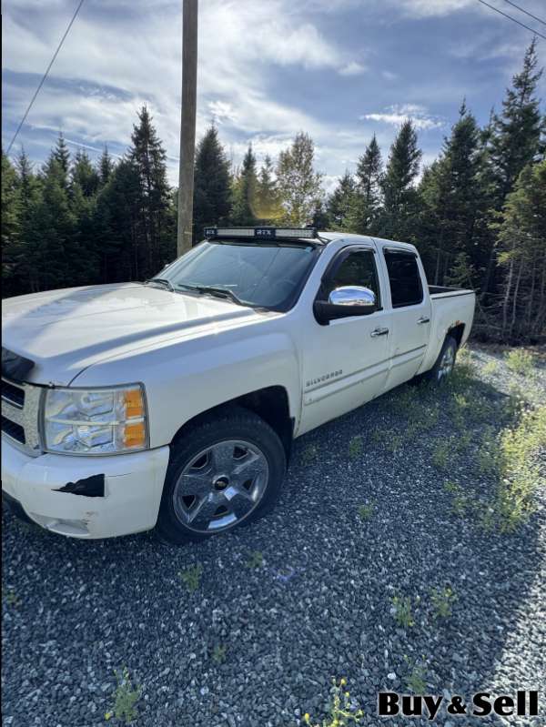 2011 CHEVROLET Silverado, Fully loaded. Needs battery, windshield and right side mirror glass, and headlight. Registered until Mar 2026. Has a set of four studded winter tires. Selling as is where is.