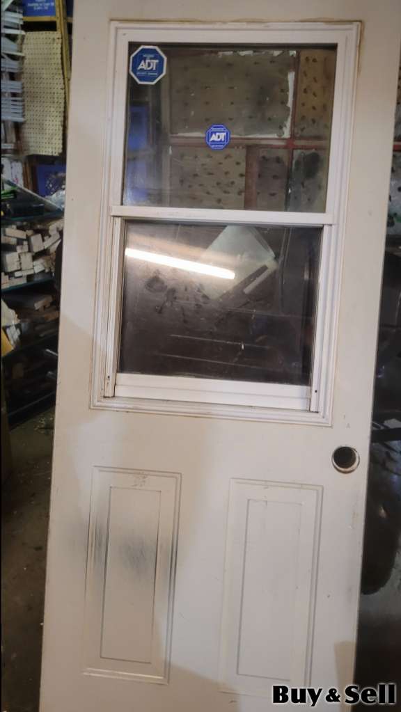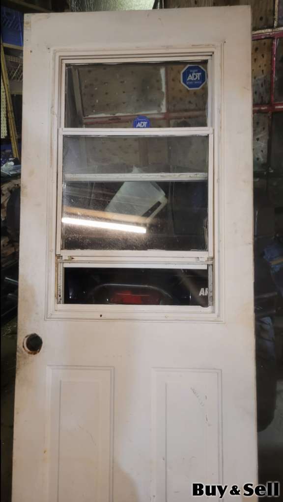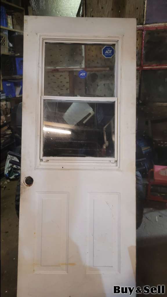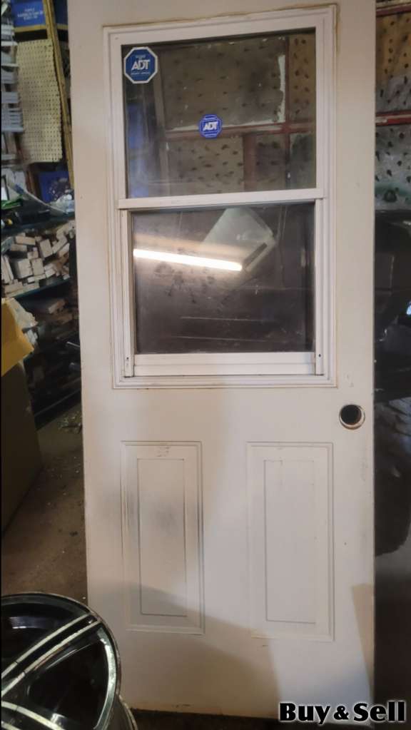 STANDARD Steel Door, STEEL DOOR WITH WONDOW NOTE SCREEN IS MISSING AS SHOWN IN PHOTOS SUITABLE FOR GARBAGE CABIN OR SHED ETC PRICE FIRM CASH ONLY ALL SALES ARE FINAL KELLIGREWS PIC UP ONLY