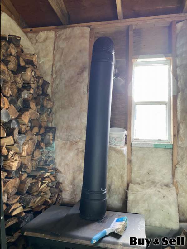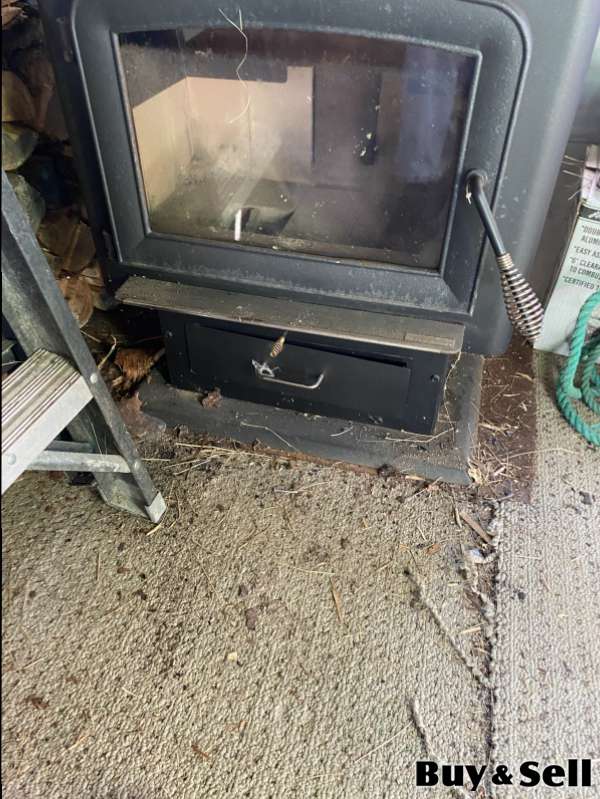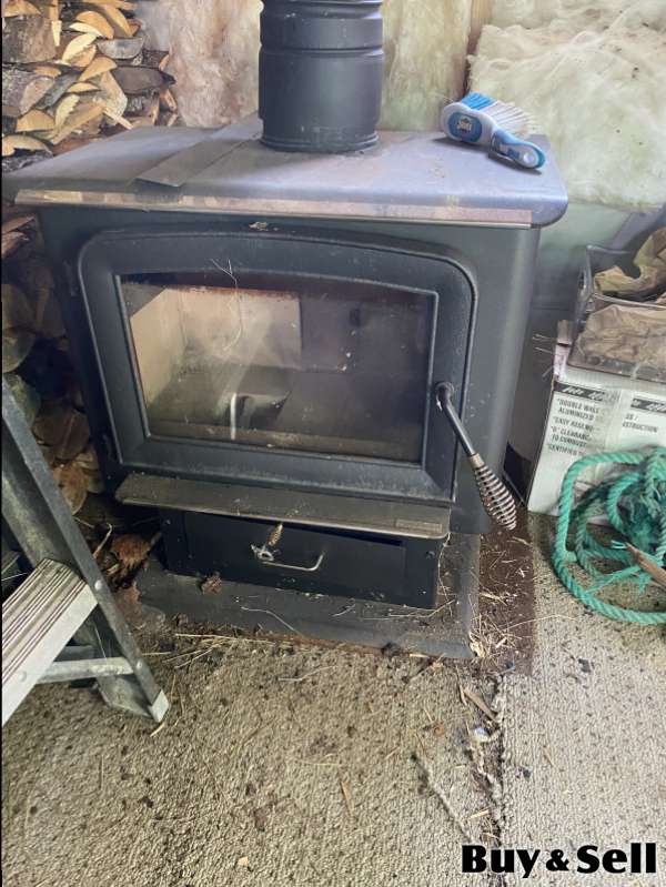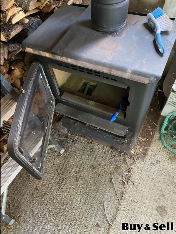 STOVE, One year old woodstove with glass door and chimney in excellent condition hardly ever used.
