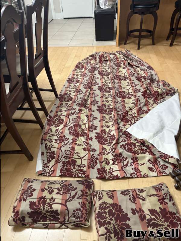 Living Room Drapes And Accent Pillows, Lined living drapes with hardware and matching accent pillows. In very good condition.
