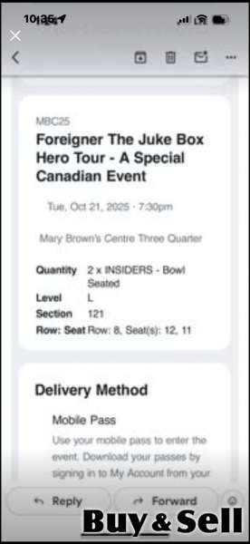 Two tickets for the Foreigner The Juke Box Hero Tour at the Mary Browns Center on Tuesday Oct 21