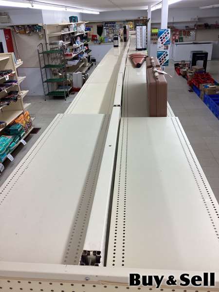 SHELVING, End shelves come with a base and 4 shelves. $300.00 for each end shelf section. While supplies last.