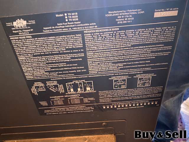 WOOD Stove - Vogelzang Shiloh Tr002b, Only (barely) used for one season. Selling as I was gifted a 12-hour burner.