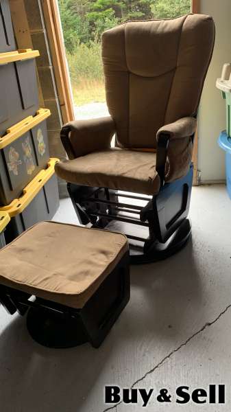 GLIDER Chair With Ottoman, Tan coloured gliding chair with gliding ottoman in good condition $40. From cat-friendly home. Must be picked up