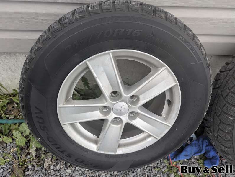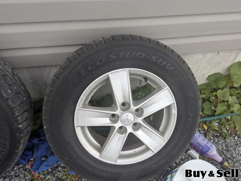 16" TIRES And Rims P215/70r16, 4 215 70 16 inch tires non studded, quiet and smooth tire, on multi fit rims bolt pattern is 5x114.3, center bore hole 67.1, fits Mitsubishi cross, Outlanders, Mazda, Kias, Hyundai Hondas, some Ford vehicles and Nissan, $850, if you want just tires then $400 for the set only 500kms on them or $400 just rims, located in Corner Brook mess if interested