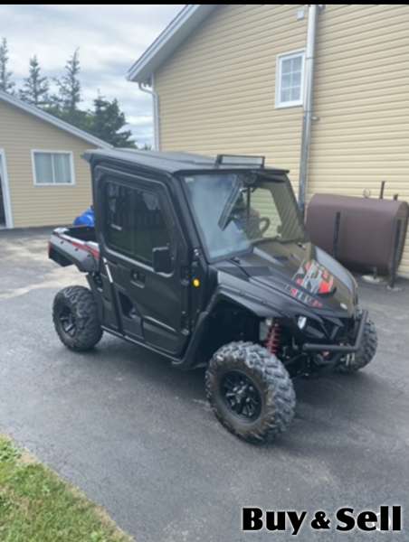2019 YAMAHA Wolverine X2 Special Edition, This Side X Side is in immaculate condition inside and out. It is always Fully Serviced according to the Manufacturer's Specifications. The Machine is stored in a heated garage, rust checked 3 times a year, adult driven, trail ridden, never used for any type of work whatsoever. The Machine has (8720 Kilometer's on it and was fully serviced with all fluids changed and 4 new tires installed at 8000 Kilometer's). There was a new interstate battery installed a couple of years ago. I have all the receipts, and I only used Yamaha products for the services, a personal logbook is kept for all the services as well. There is a (20-year,120,000 kilometers or 5000 engine hours) manufacturers engine warranty from Yamaha that is fully transferable to the new owner. The Machine has a full hard cab, front bumper, side mirrors, center mirror, heater, (4500 lb. Warren winch), windshield wiper and washer, trickle charger for the battery, (26" light bar), Led headlights, Led reverse lights, Led taillights. There are 2 (1/2 doors) that come with the Machine that have never been used. This Machine has been taken care of above and beyond. The machine has been absolutely flawless. The price is ($ 19,500 or OBO). The price is negotiable.