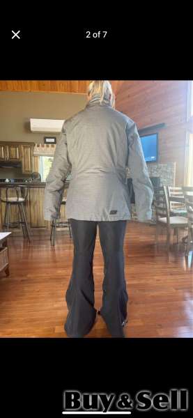 KLIM Gortex Suit, Ladies size large 2 piece snowmobile Klim suit with trap door for easy access for when nature calls. Small burn on bottom of pant leg doesn’t interfere with zipper