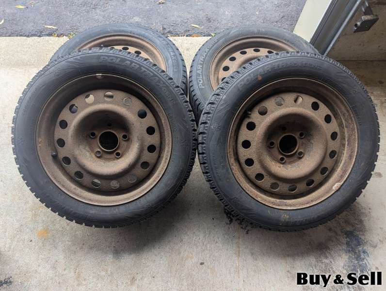 16" TIRES And Rims P205/55r16, Selling a set of 205/55/R16 Polar Trax Gen2 Winter tires, complete with winter rims and winter lugs (all pictured). The tires have approximately 11,500KMs on them. Tires came off a Kia Forte SX. Selling because I have sold the Kia and they do not fit my current vehicle. The tires have no leaks, no previous patching, or any abnormal wear. They were still balanced when I took them off the car and had no other discernible issues that I know of. Looking to sell for $400.00.