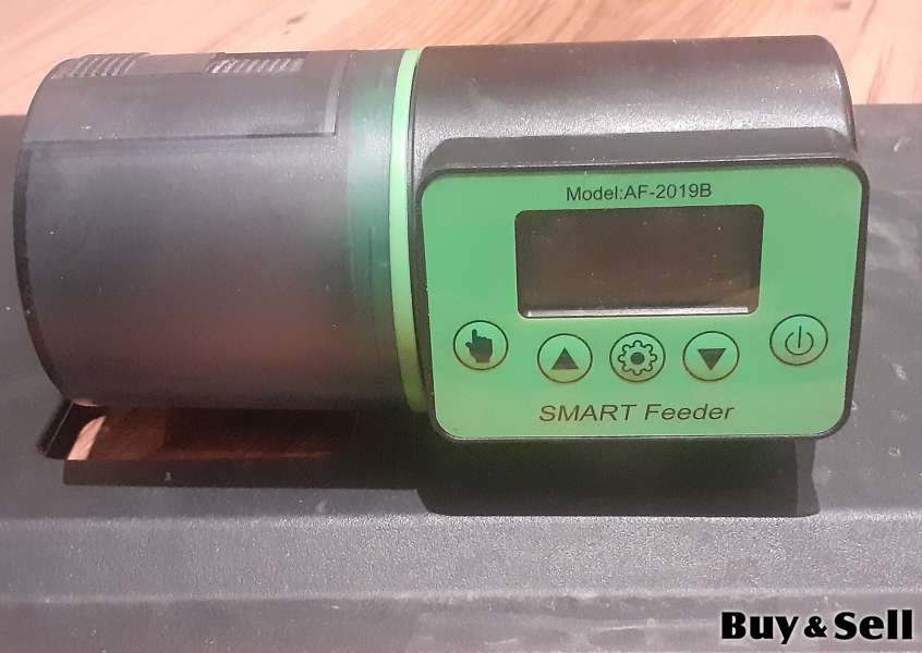 The fish feeder is stuck onto the hood with an adhesive sticker. It also comes with a swap-able bottom attachment so if you want to have the feeder on the frame of your aquarium rather than stuck to the hood, you can change it out. The fish feeder will drop a lot of food into the aquarium even on the smallest setting, so I would recommend using it with an aquarium larger than 10 gallons if you have one.