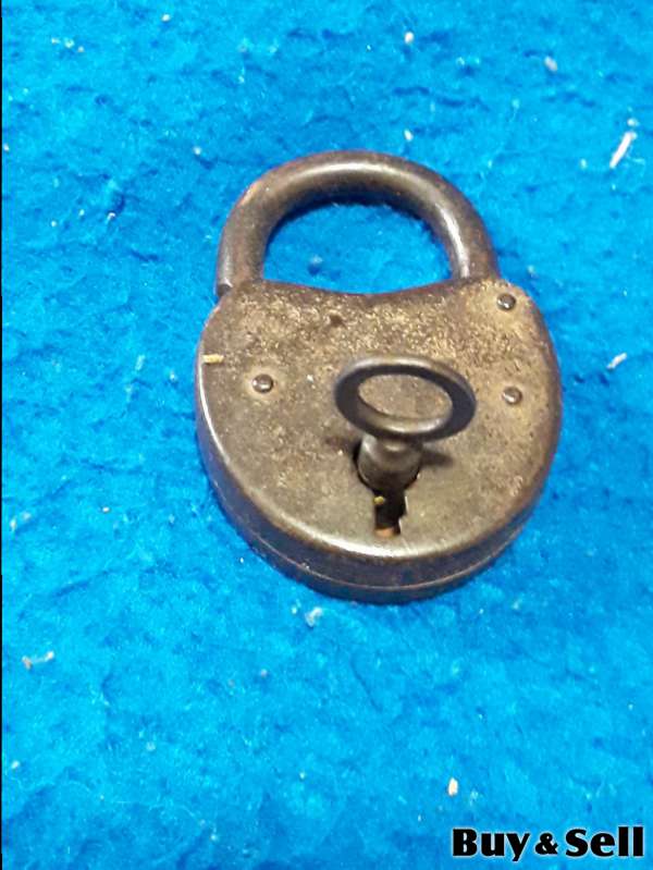 LOCK, A small original antique padlock, often described as a rustic metal lock with a key, typically features a weathered appearance, often made from iron or cast iron, and may include a skeleton key.[1] [2] [3] These padlocks are frequently sought after for their decorative appeal, fitting well into rustic, farmhouse, or industrial-style decor.