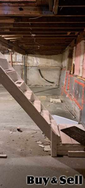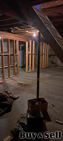Full undeveloped basement with it's own entrance. Good insulation. Previous owner had a woodstove, so you could hook that up to the pipe again (you can see ash in the basement where it was).