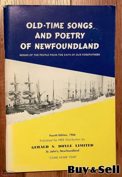 NEWFOUNDLAND Book, DOYLE, Gerald S., (comp.). Old-Time Songs and Poetry of Newfoundland. Fourth Edition. St.John's : Gerald S. Doyle Limited, 1966. Pp 1-88. Ads. 8vo, wraps, with blue & yellow on front. O'Dea 1878d. See ENL I:641 for Doyle (1892-1956). Also BN IV:347-50 and r.section. Introduction by Mrs. Gerald S. Doyle and Foreword by F.W. Rowe