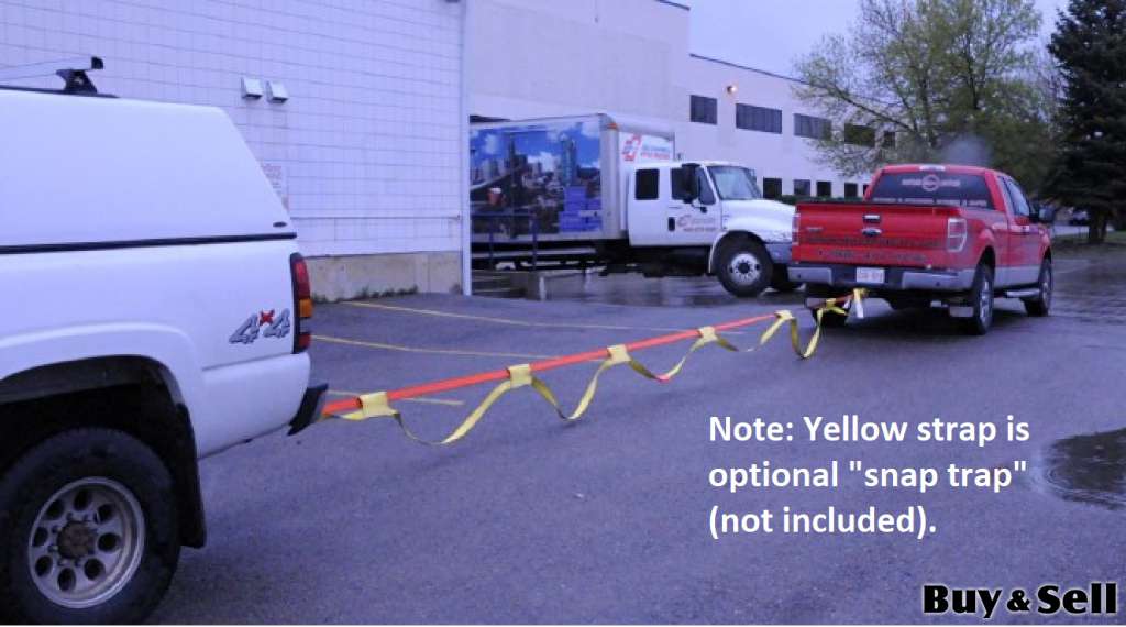 When stuck vehicle and recovery vehicle both have frame mounted hitches, two hitch units are used. When only recovery vehicle has frame mounted hitch, strap is attached directly to stuck vehicle in suitable location.