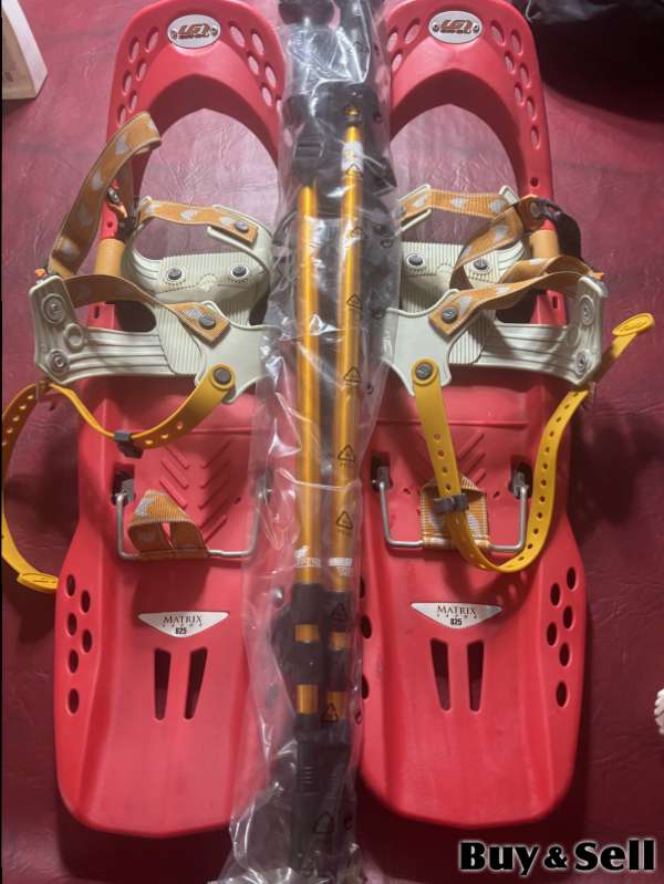 SNOWSHOES, one pair Garneau 25” like new, poles and bag included