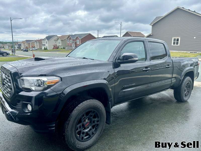 Km's are around 43,500. Automatic transmission. There have been a brand new set of tires with sensors just installed. Tonneau cover and box mat included. No maintenance lights on dash. The truck was just inspected and was just maintenanced at Toyota Plaza under warranty. An inspection report can gladly be provided. Oil change just completed. Truck is paid off of a 4 year lease and I am the original owner. No accidents. Hitch package. Black leather interior. Sunroof. 6 foot box. Has navigation. Has auto starter. Heated seats and steering wheel. V6 double cab. 4WD. Any questions, please ask.