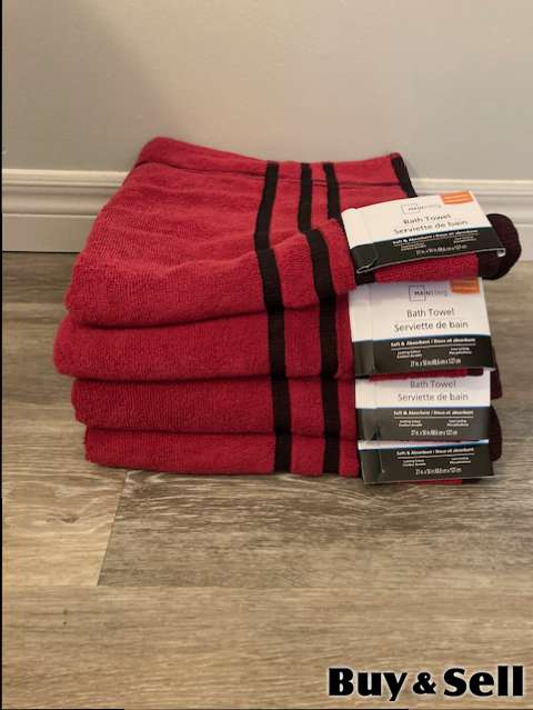 BRAND New Bath Towels, Selling these 4 Brand New Red Bath Towels with Black Accents, never used, with tags still attached!