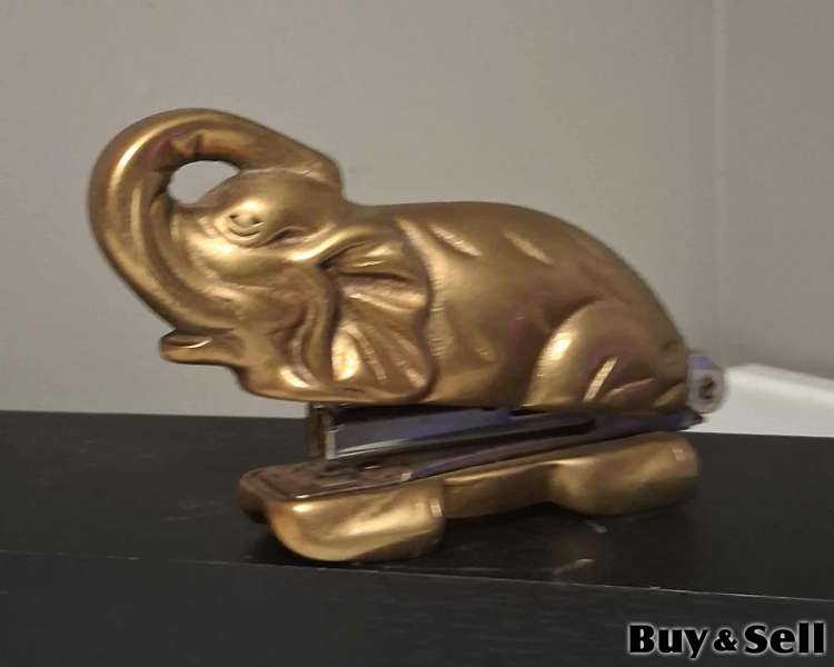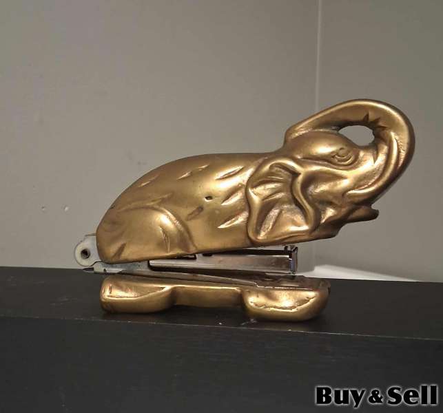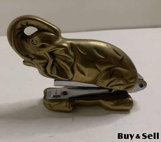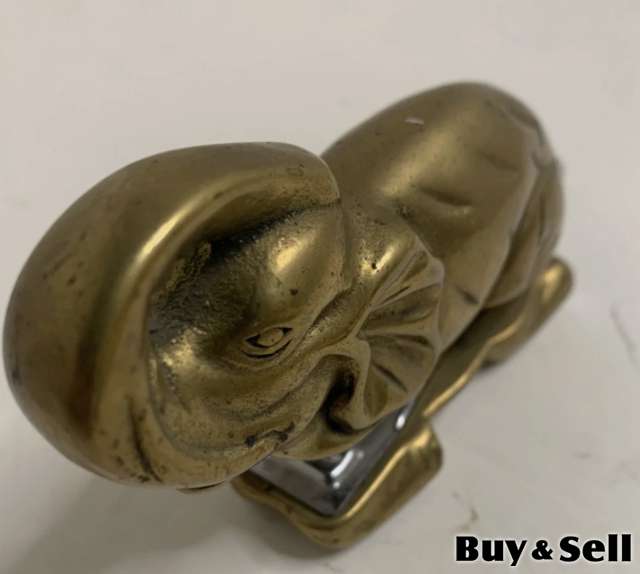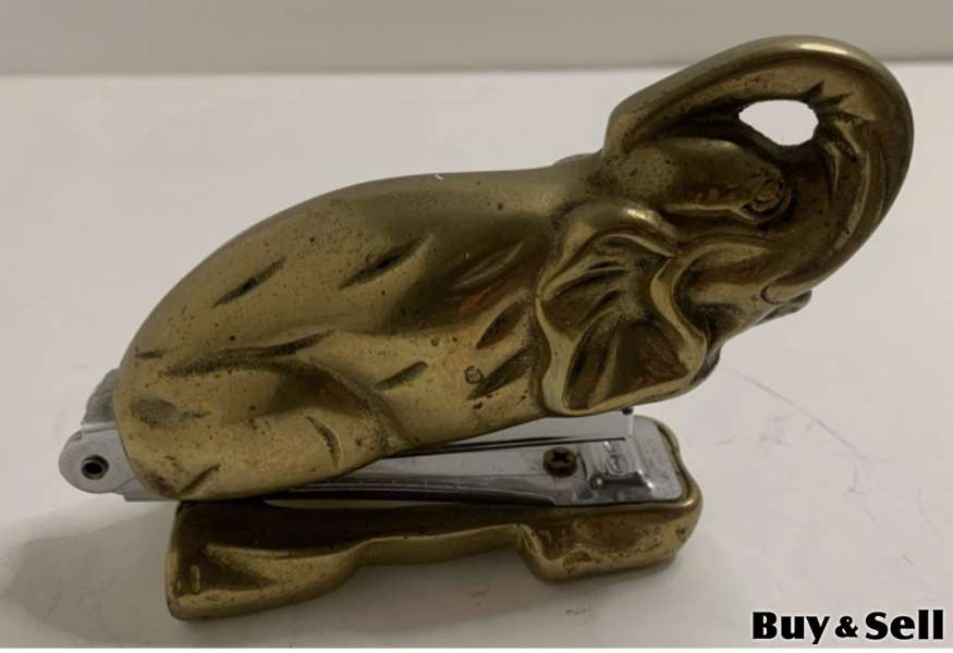 VINTAGE Brass Stapler Collectors Item, 1985 MSR Imports Brass Elephant Desk Stapler Trunk Up 4.5 Vintage
