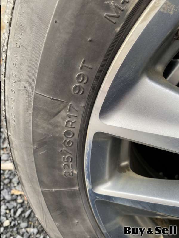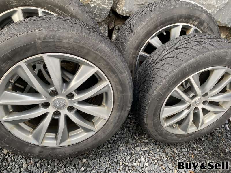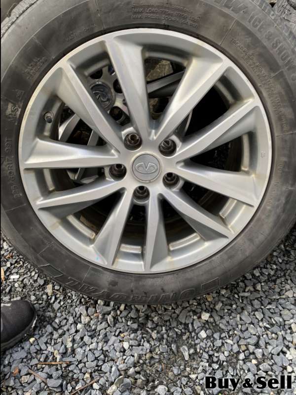 17" TIRES And Rims P225/60r17, 4- aluminum alloy rims with sensors and snow tires. P225/60R 17. Came off a 2017 Infinity QX -50. 5 bolt pattern. Tires are worn , May get 1 more season. Value is in the rims.$450.00 cash only, no delivery.