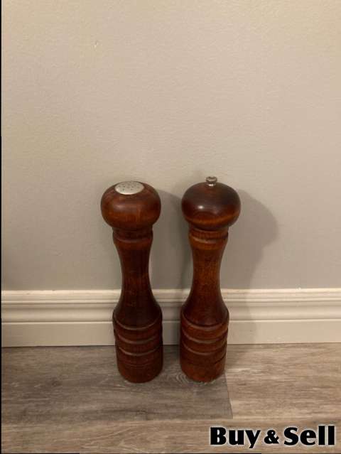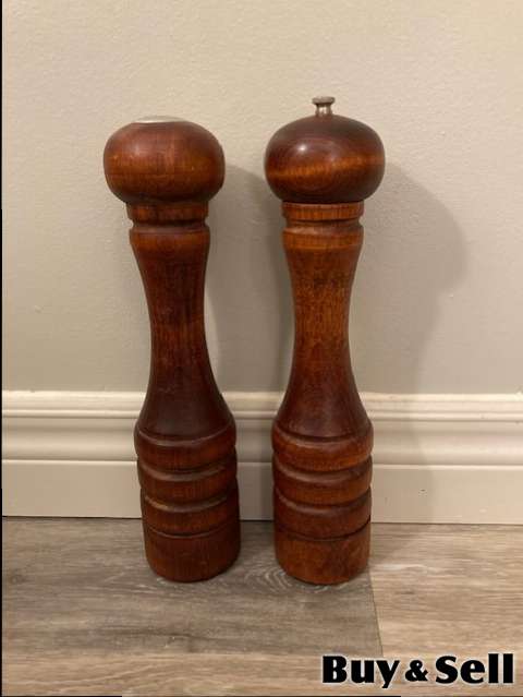 VINTAGE Baribocraft Canada Salt & Pepper, Selling this beautiful, wooden, Vintage 12” Baribocraft Canada Salt & Pepper Mill Set with mid-century modern aesthetic.