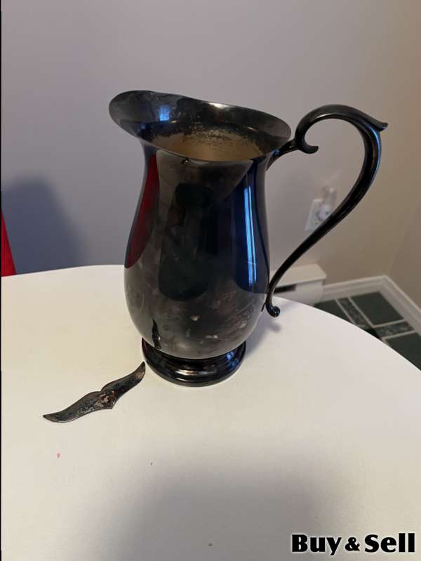 Water Pitcher WATER Pitcher, Silver water pitcher. 9” tall. Price: $55.00 Location: Conception Bay South (Avalon) Phone: 709-749-XXXX Click to show Views: 6 Price: $55.00 Location: Conception Bay South (Avalon) Phone: 709-749-XXXX Click to show Report