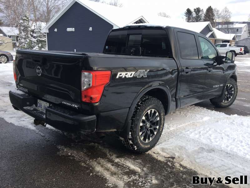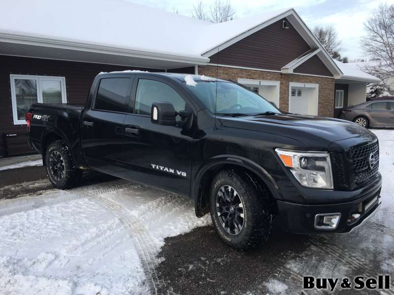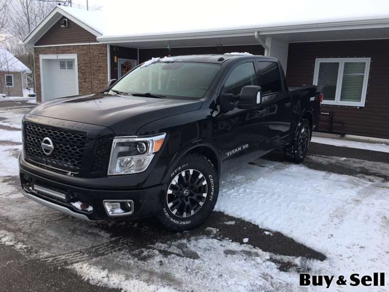 2018 NISSAN Titan, 2018 Nissan Titan Pro X4 crew cab with 7-speed 5.6L V-8 with only 78,377 kms. Loaded, with leather seats, navigation, cruise, power and heated seats, power windows, automatic headlights, keyless ignition, keyless power door locks, rear camera, backup sensors, blind spot sensors, bluetooth, AC, factory towing package, led light bar, spray in bed liner, fold-up hard tonneau cover, tow hooks, 275-R70-18 Cooper all-terrain tires on alloy rims, rear privacy glass, rear power sliding window, and more. $24,900. Located in Pasadena.