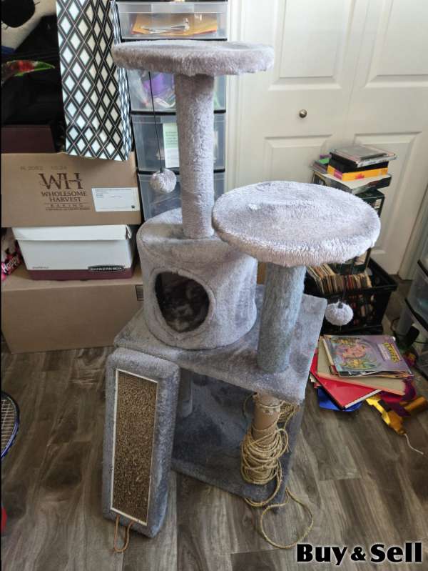 CAT Tree, Owned for a few years, mostly used for a scratching post so you would need new rope for legs and new cardboard box scratcher. Bought for $80 selling for $10.