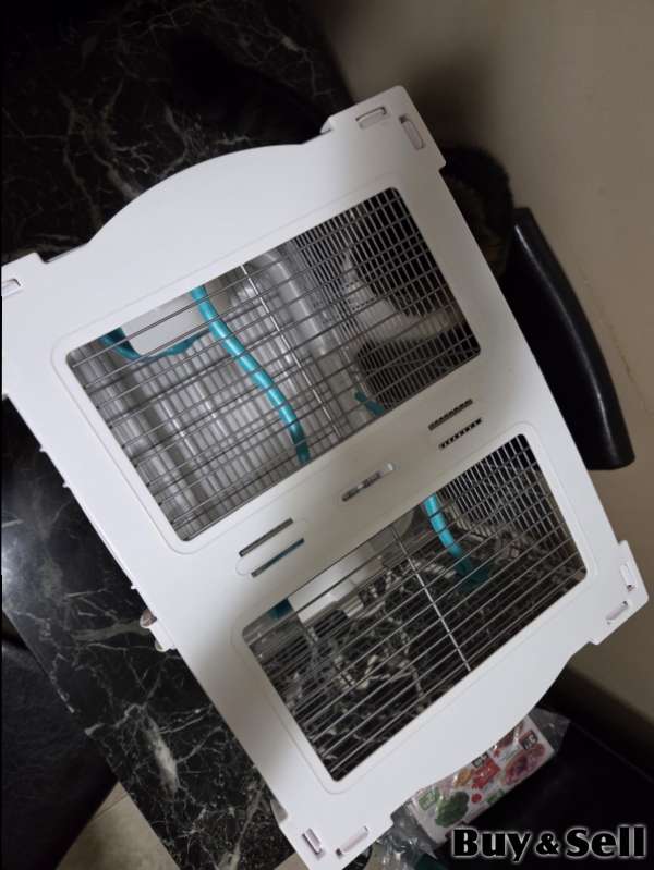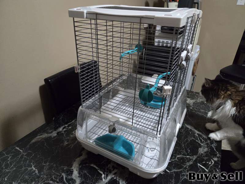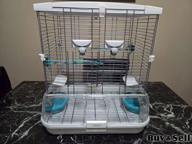 • Includes blue perches, blue food and water dishes (easy to access), dish covers