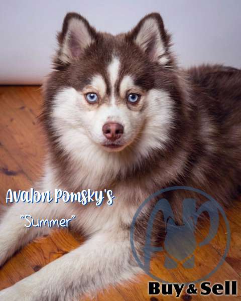 A spectacular mix of the Siberian Husky and the Pomeranian. These puppies offer the exotic "wolf-look" and striking masks/markings of a Husky with the affectionate, goofy, and manageable size of a Pomeranian. They are intelligent, active, and make incredible companions for families or active individuals.