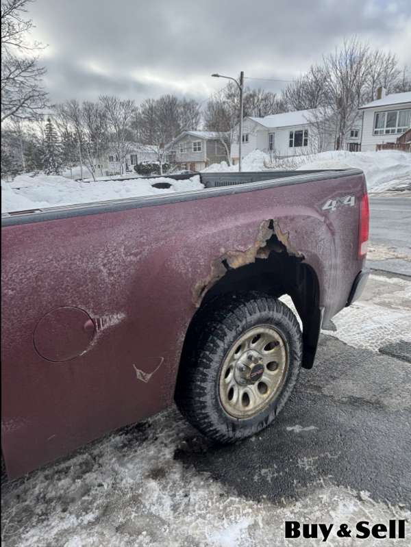 2013 GMC Sierra, Approx. 135,000 km. Transmission issues and significant rust on wheel wells and rocker panels. One wiper not working. Chassis serviced at Paul Murphy’s. Brand new tires (~$1,100). Priced accordingly. $3,500 OBO.
