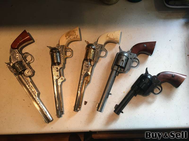 REPLICA Hand Guns, 150.00 ea Hand gun replicas, Some are really ornate. Great for collector . Smith and wesson, 13 1/4" , 2 Colt 1851 navy revolvers 13",Colt single action army revolver ,12 1/2" , Colt single action army revolver 10 1/2"...!50.00 ea or will do deal on all if sold together.