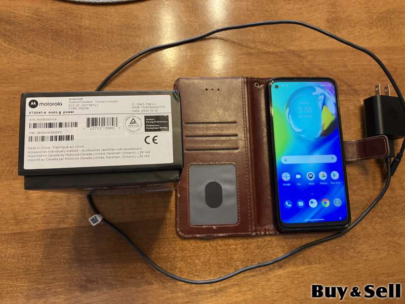 SMART Phone Motorola G Power (2020) Unlo MOTOROLA, Smart Phone Motorola G Power (2020) Unlocked, 6.5 inch display, 4 GB ram, 64 GB memory, Front/Rear Camera, OS Android 11, includes power cable and folio case, has slight crack in corner and speaker phone not 100%, brand new was $290, going for $50 obo.