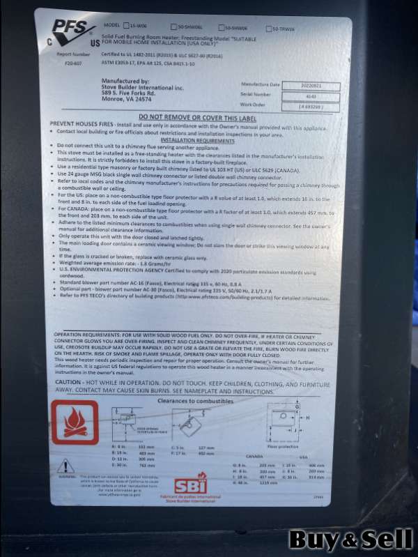 STOVE, Woodstove - Only used for 3 months. Too big for Cabin. Heating capacity 2400 square feet. Originally bought at Canadian Tire for $1400. Willing to sell for $1100. Located in Stephenville. Call or text 709-214-0852.