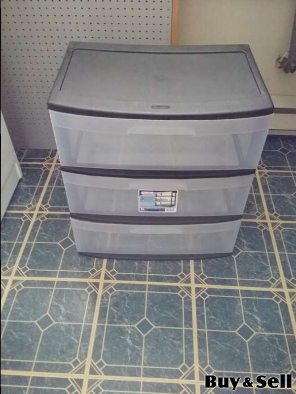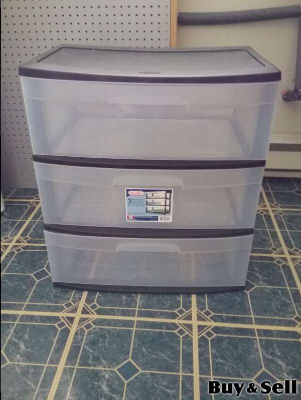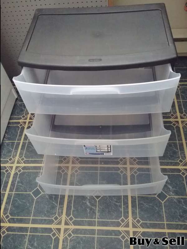 3 Drawer Storage, 3 drawer plastic storage unit. Measures 55 cm (22") wide, 40 cm (16") deep and 60 cm (2') high. Clean and in excellent condition with no damage.