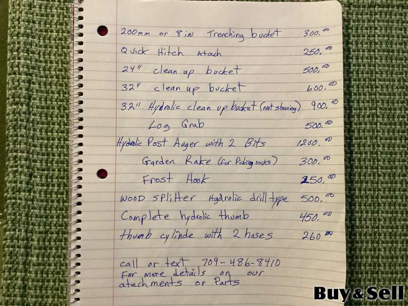 CF Industrial, Here is a list of my available attachments with a price list all provincial tax apply,if you looking for something other than what’s on here let me know and I can get it, I can help with locating parts as well