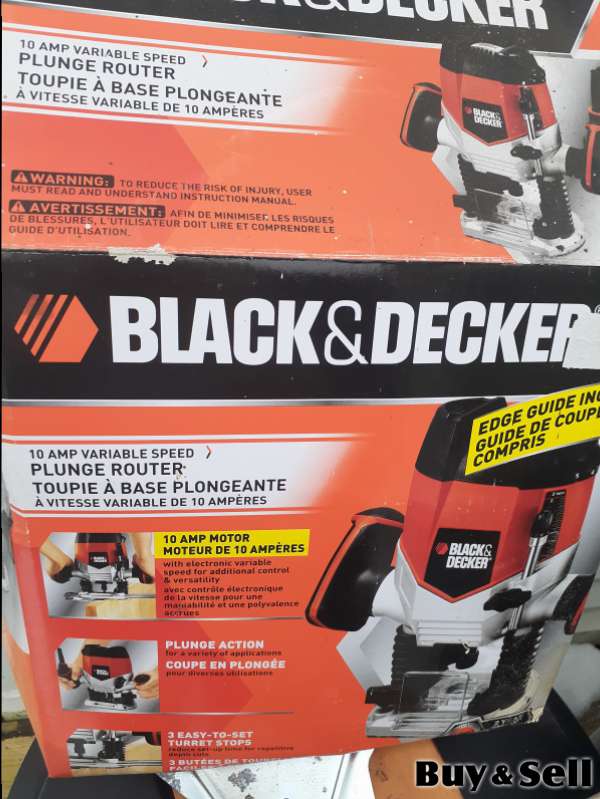 ROUTER, Selling a never used 10 amp Black and Decker Variable Speed plunge router with an adjustable edge guide.