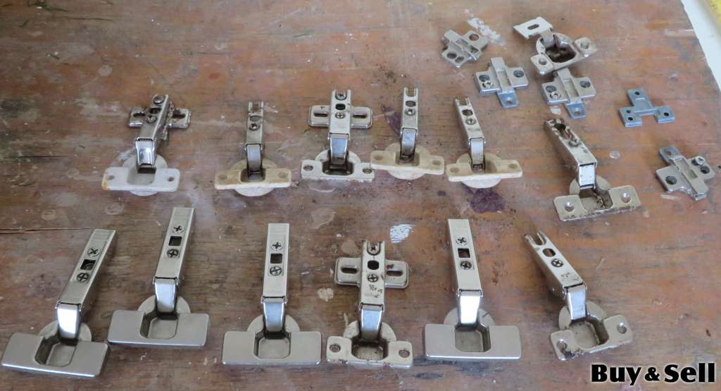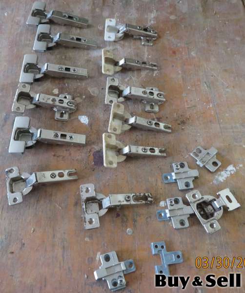 CABINET Hinges, At least 10 used cabinet hinges and assorted hardware. Price $25.00