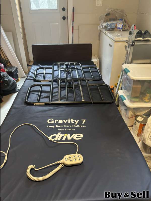ELECTRIC Hospital Bed, Drive Gravity 7 electric hospital bed with mattress. Bed has remote for bed positioning with foot board and head board with side rails on each side. Bed is in good condition.
