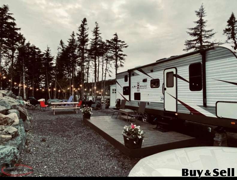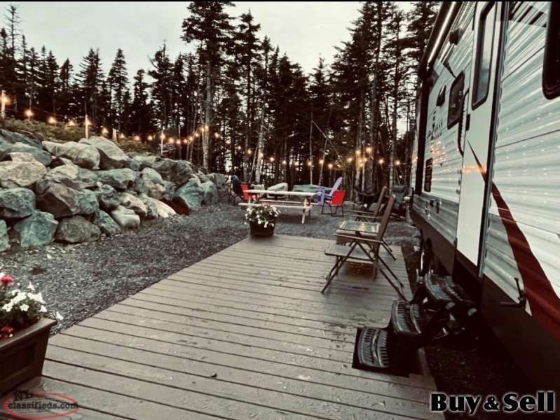 The camper is located on a beautiful, seasoned site at marine park located in pouch cove. The camp fees are paid for the 2027. The park has everything you will need including on site stores, liquor stores, laundry services, camper maintenance services, parts service, propane services, lots of fun things to do for the kids, please see camp website or please ask any more questions you have.