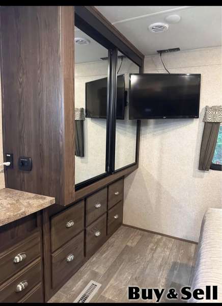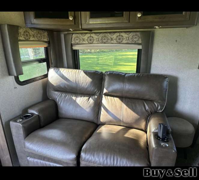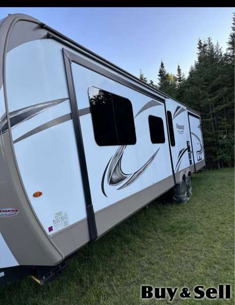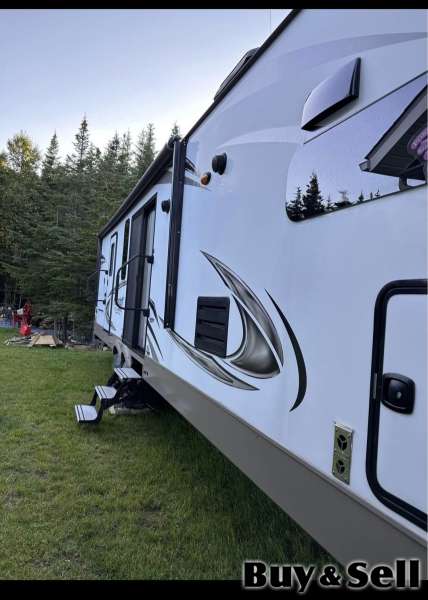 2019, Well maintained hardlv used. Has two slides, power awing , hitch, leqs. Two tv's, heated & massage leather recliners. King size bed & pull out eather sofa. Kitchen is up front which gives open concept & comfort for entertaining. No leaks winterized every vear by RV dealer. A must see, located in kippens. Serious inquiries only & may message for a private viewin