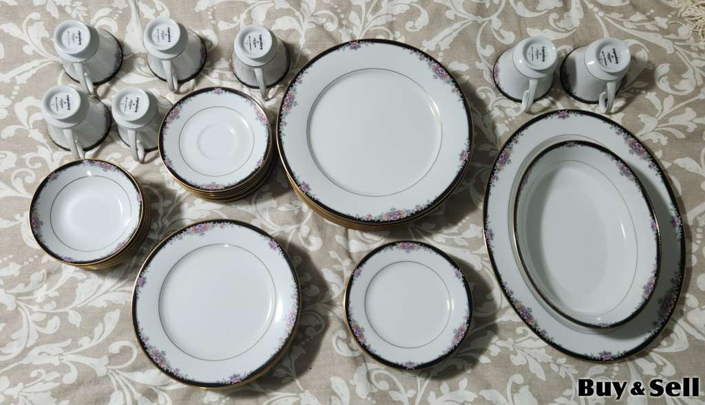 DISH Set, I am selling this set for a senior relative. This is a 49 piece Legendary Belle Empress 3980 dish set by Noritake, Sri Lanka with. Also includes 2 plastic stands for a small plate and cup. This set is in excellent condition! It's been sitting in a china cabinet since new! It's 49 pieces because 1 cup is missing. It's an 8 place setting but only 7 cups! See pictures of all items included. Lowered price to only $175.00! (Was $225.00!)