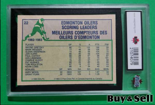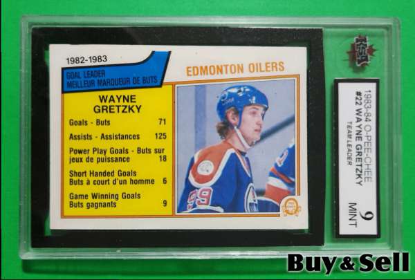 HOCKEY Card, 1983/84 O-Pee-Chee, Wayne Gretzky, Team Goal Leader card #22, Graded 9/Mint. Wayne scored 71 goals that year and also had 125 assists for a total of 196 points! I'm asking $60.00 or best offer! I'm in Bay Roberts.