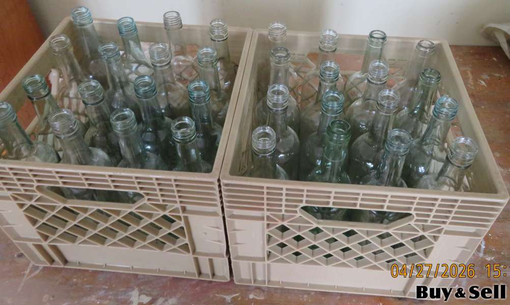 Clean (no labels) wine bottles, 16 bottles in a milk carton - $20.00.