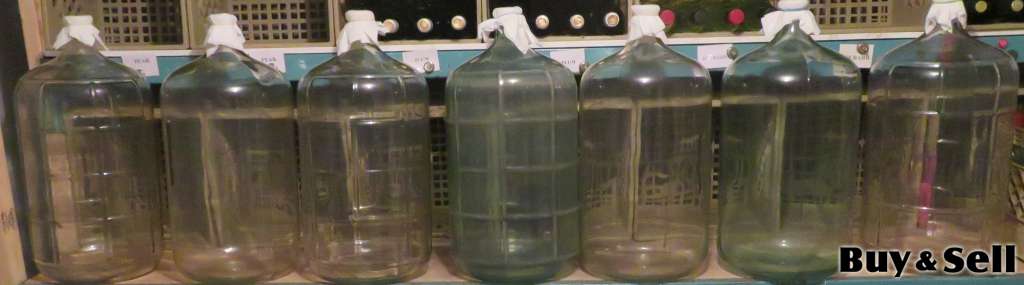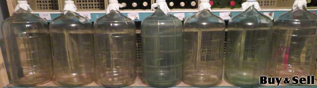 A total of six 5-gallon glass carboys - $10.00 each.