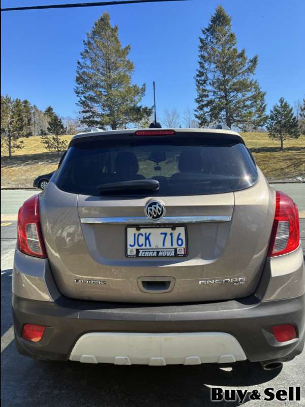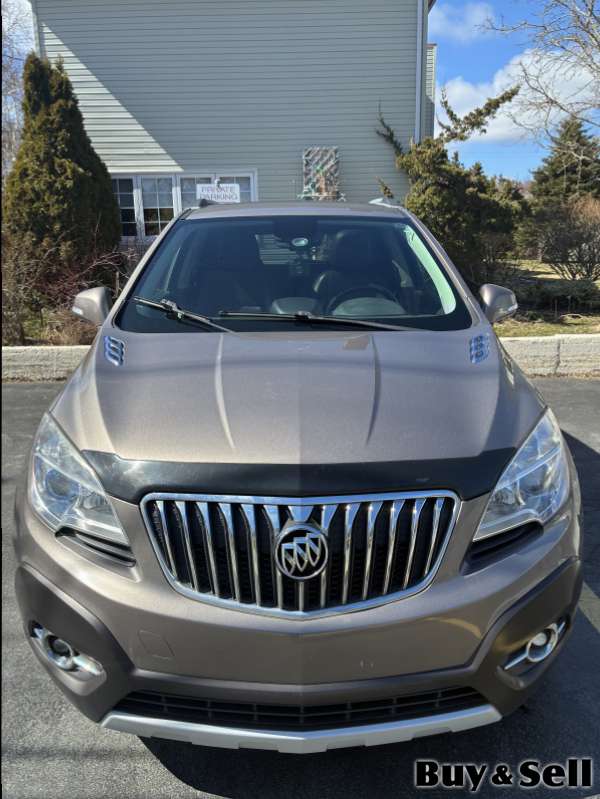 2015 BUICK Encore, Buick Encore AWD 4 door Premium model SUV. 6 speed automatic transmission. 1.4L turbocharged 4 cylinder. Colour is Sandy Beach Brown Metallic. Has sunroof, heated leather seats and heated steering wheel. Power seats with memory for both driver and passenger. Winter and summer mats. Nice two toned interior-black and beige, with Bose stereo system. Backup camera. Oil change and filter just done. Undercoated in 2026 and prior. 201,500kms. Always maintained, spotless inside and drives great.